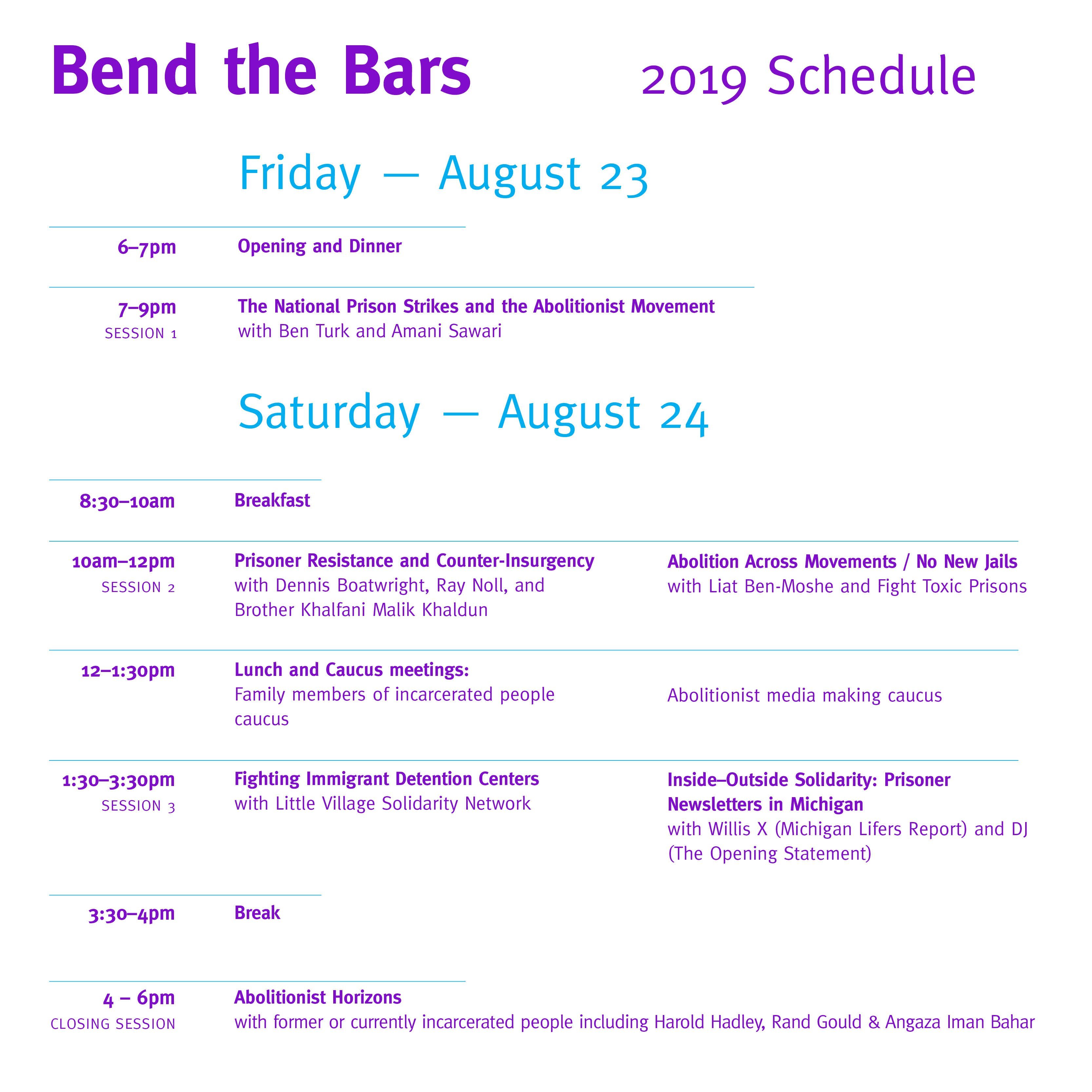 Bend the Bars 2019 is only a few weeks away! Bend the Bars is a day-and-a-half long conference about strategies and tactics for supporting the prisoner movement and the struggle for a world without prisons. It will take place in Lansing, Michigan from August 23 thru August 24. And you’re invited!